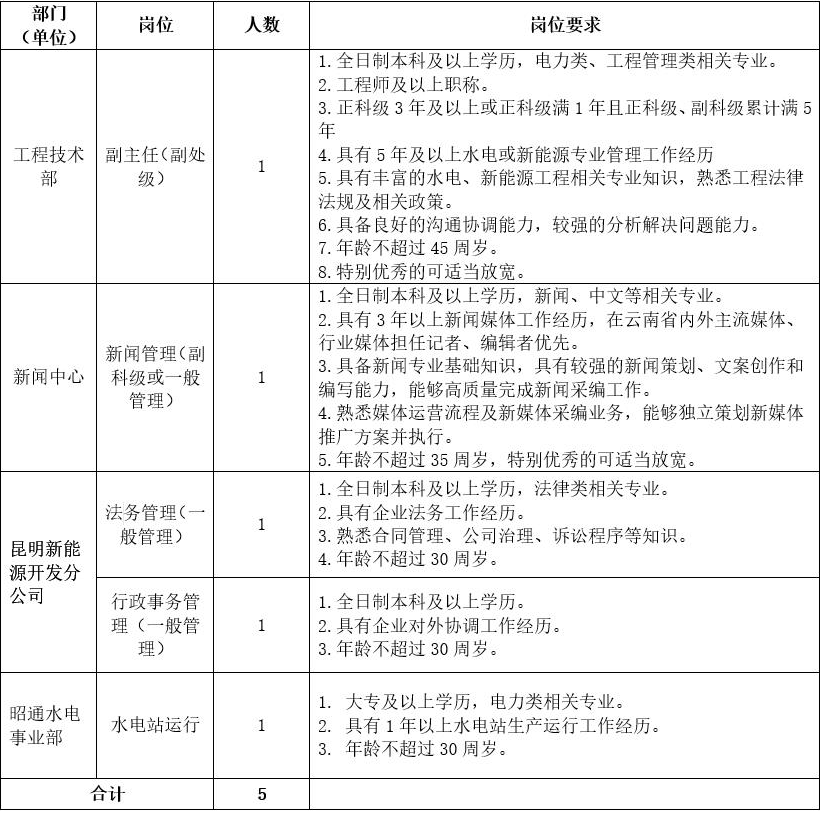 國(guó)家電投集團(tuán)云南國(guó)際電力投資有限公司社會(huì)招聘公告