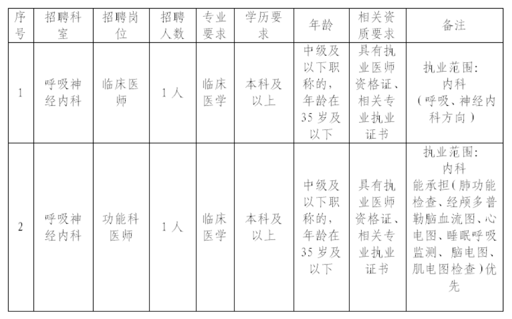 呼吸神經(jīng)內(nèi)科醫(yī)師2人。